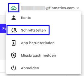 - Klicken Sie rechts oben auf Ihre E-Mail-Adresse und wählen Sie Schnittstellen.