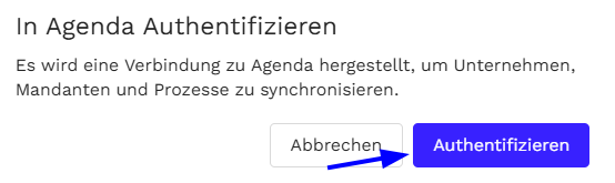 - Klicken Sie auf den Button In Agenda Authentifizieren.