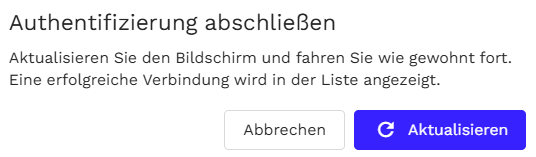 5. Nach erfolgreicher Anmeldung erscheint in Finmatics ein Bestätigungsfenster. Klicken Sie auf Aktualisieren.