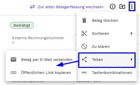 Wie versende ich Belege per E-Mail oder Link?