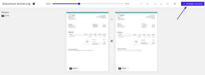 Sobald Sie die Anpassungen in der Dokument-Sortierung bestätigen, werden die Belege automatisch in Ihr Buchhaltungssystem exportiert. Weitere Informationen zur Trennung von Belegen finden Sie in Wie kann die automatische Trennung der Belegseiten überprüft und bearbeitet werden?.