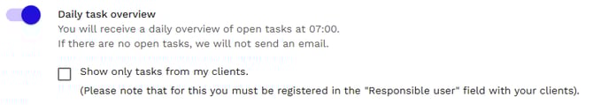 You can also individually select the tasks for which you would like to receive a notification. To do this, tick the required boxes.