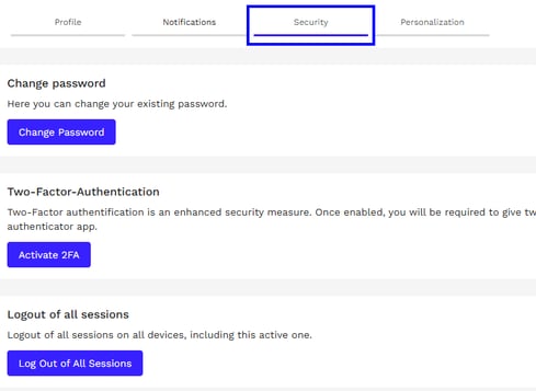 You can change your password and activate/deactivate two-factor authentication under "Security". You can find more information in How do I set up two-factor authentication (2FA)?. You can also log out of all sessions here.