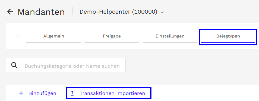 - Wechseln Sie auf den Reiter Belegtypen.