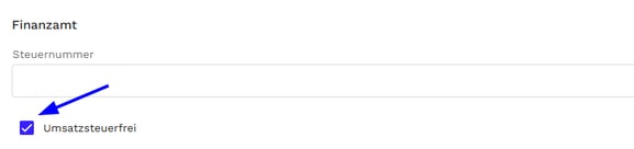 - Markieren Sie im Bereich "Finanzamt" das Kästchen Umsatzsteuerfrei.