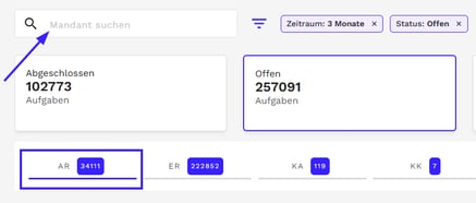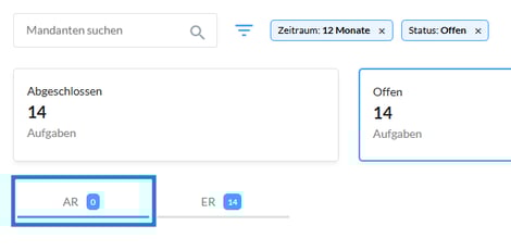 Wie auch in anderen Ansichten können Sie hier nach Mandanten filtern.