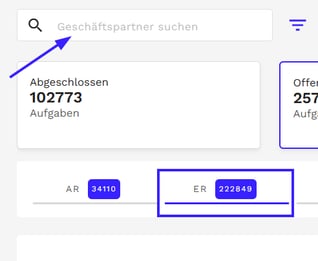Bei Eingangsrechnungen und Kassenbelegen wird nach Geschäftspartnern gesucht.