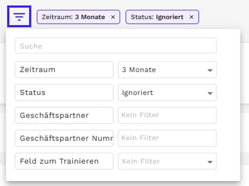 Wenn Sie einen Beleg nicht trainieren möchten, weil dieser eine Ausnahme darstellt, haben Sie die Möglichkeit auf “Ignorieren” zu klicken.