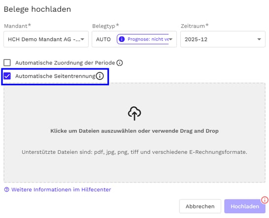 Wie funktioniert die automatische Seitentrennung von Belegen?
