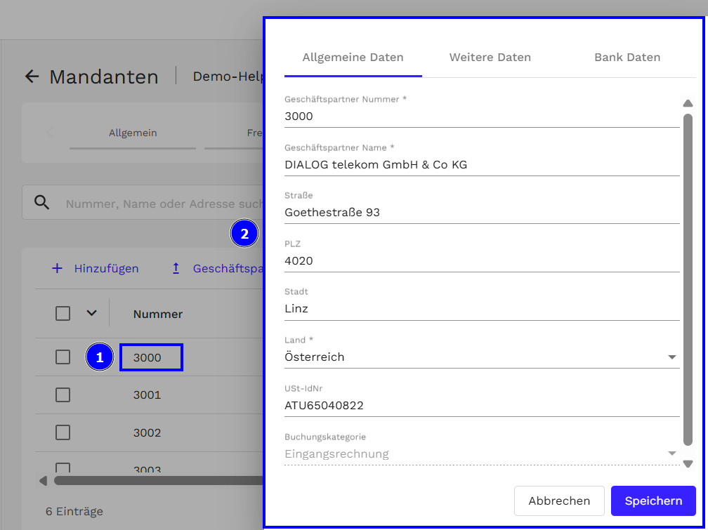 Versuchen Sie, die hinterlegten Daten in Finmatics so exakt wie möglich an die Informationen auf den Rechnungen anzupassen. Die KI sucht primär nach eindeutigen Identifikatoren: