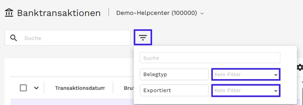Anschließend können Sie die Ansicht nach exportierten und nicht exportierten Bankauszügen filtern.