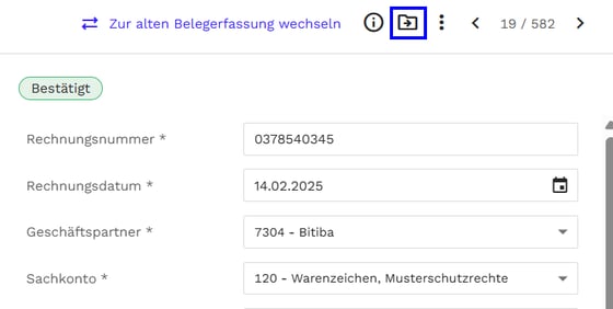 Wenn Sie sich bereits in der Detailansicht eines Belegs befinden (Erfassungsmaske), können Sie diesen direkt dort verschieben: