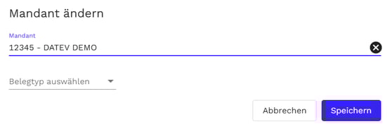 - Wählen Sie im Drop-Down-Menü den gewünschten Mandanten und/oder Belegtypen aus.
