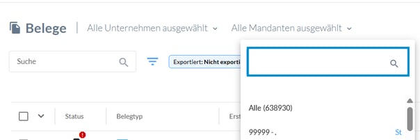 Wie filtere ich nach Mandanten oder Unternehmen?