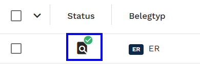 In der allgemeinen Listenansicht erkennen Sie verifizierte Belege auf einen Blick: In der Spalte Status sind diese mit einem grünen Häkchen markiert.