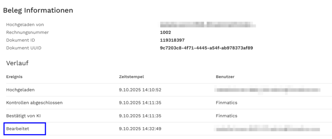 Um nachzuvollziehen, wann genau ein Beleg verifiziert wurde und ob danach noch Änderungen erfolgt sind, nutzen Sie den Belegverlauf.